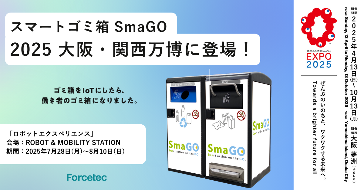 フォーステックは、テクノロジーの力でこれらの課題を解決するソリューションとして、スマートゴミ箱「SmaGO」を日本全国に500台以上展開してきました。今回の大阪・関西万博「ロボットエクスペリエンス」への出展では、SmaGOが単なるゴミ箱ではなく、都市を最適化する「ロボット」であり、未来のスマートシティを支える社会インフラであることを、来場者の皆様に直接ご体感いただきたいと考えています。