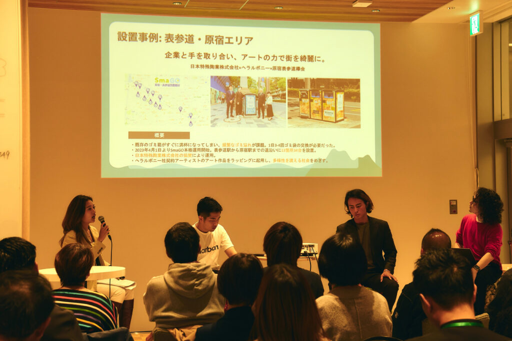 森下は「Z世代が描く、持続可能な社会の解決策」というセッションに参加し、スマートゴミ箱「SmaGO(スマゴ)」を通じた都市課題へのアプローチについてプレゼンテーションを行いました。