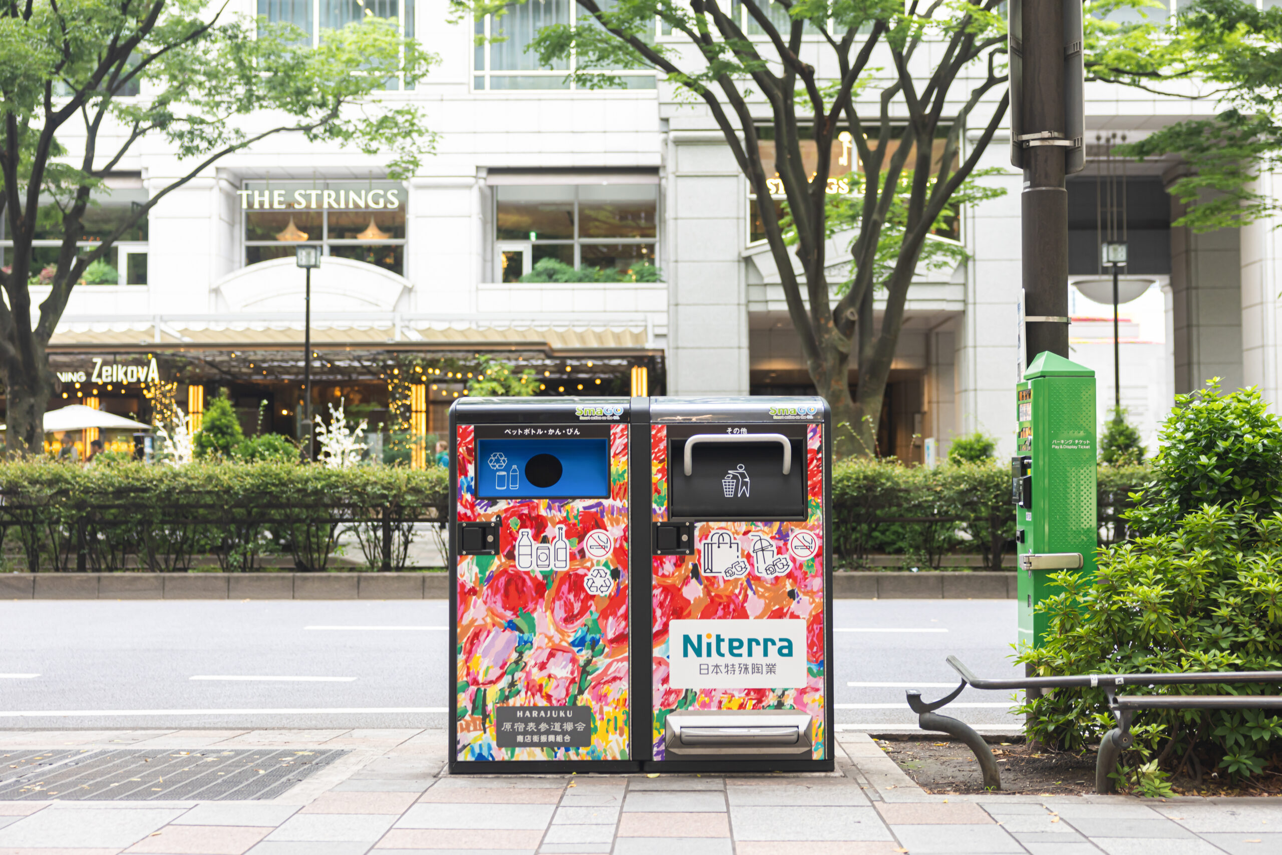 本プロジェクトは、ゴミを正しく捨てることからはじまる、循環型社会の実現に向けた新しいチャレンジです。2023年より、表参道に設置中の「SmaGO」34台を活用し、CO2の削減や、ゴミを分別し正しく捨てて美しい環境を整備していくことに加え、ヘラルボニーが契約する異彩を放つ作家の彩り豊かなアートが目を引き、街を輝かせることにも繋がっています。